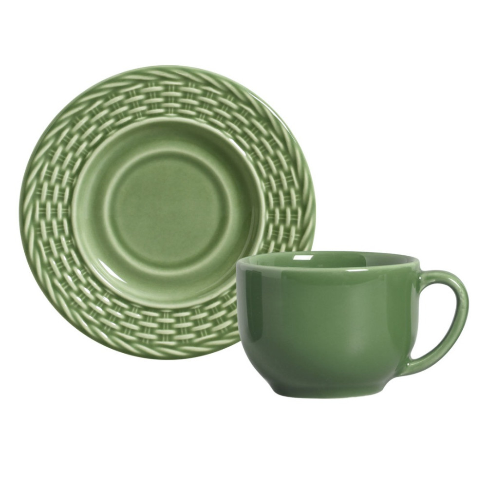 Jogo de Xícaras de Chá Bali Verde Sálvia com Pires 6 Peças - Porto Brasil